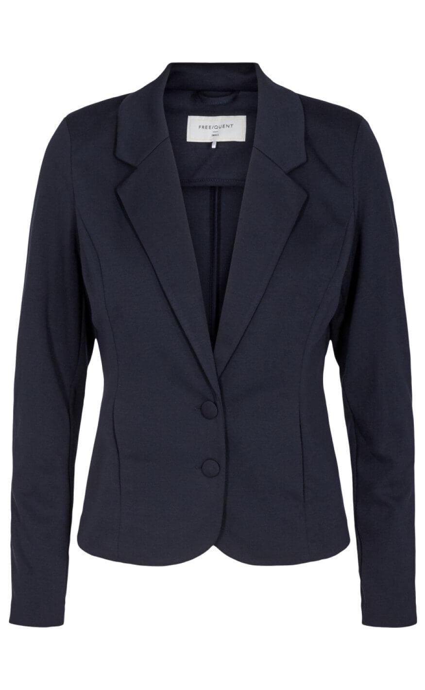 Vi har fundet Freequent Jakke Blazer Nanni Salute fra Freequent hos fashionbystrand i kategorien . FREEQUENT NANNI JACKET SALUTE Lækker blazerjakke fra FREEQUENT i navy. Blazeren har lange ærmer, en fin krave og en gennemgående åbning med knapper, så den både kan bruges lukket og åbentstående. Freequent jakken er lavet i et strækbart materiale og har e